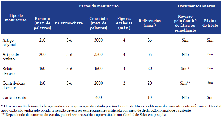 • Reporte de caso: Presenta casos con alguna particularidad diagnóstica o terapéutica de interés público, incluyendo una breve revisión del estado del arte. Se debe proteger la identidad de los pacientes y contar con el consentimiento informado (ver Políticas Éticas en Investigación). Asimismo, se debe ceñir a las pautas de The CARE Guidelines: Consensus-based Clinical Case Reporting Guideline Development.