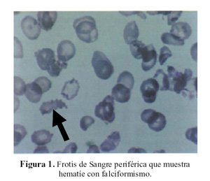 ¿Será una anemia falciforme? (2). Una característica de las anemias falciformes es el dolor óseo, dolor cefálico, dolor en las extremidades, dolor esplénico, cuadro venoclusivo con crisis, e infarto esplénico. Por la ausencia de falciformismo en el frotis de sangre periférica (Figura 1) y por la ausencia de dolor, esta posibilidad se aleja.