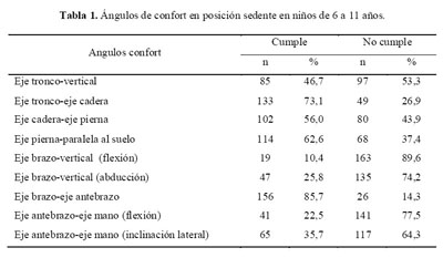 Mantenernos sentados por largas horas se ha hecho una característica de la sociedad actual, que trae consigo una serie de inconvenientes que derivan muchas veces en problemas de salud (1). En general, la incomodidad o las lesiones que genere la adopción de una postura estará en función del ángulo articular y del tiempo que se mantenga, es decir, cuanto más inadecuada sea la postura menor tiempo deberá mantenerse (2). Los niños escolares constituyen una de las poblaciones que pasan la mayor cantidad de horas en sedestación (3). Se hace necesario conocer si la postura mantenida es adecuada para el escolar la cual es originada principalmente por el mobiliario que utiliza.