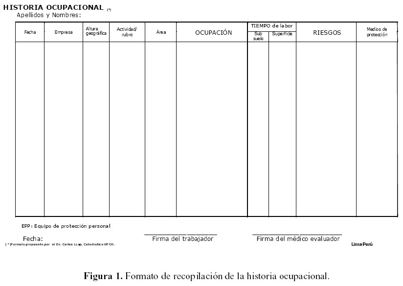 La recopilación de información a través de la historia ocupacional hace de ésta una herramienta de vital importancia en el proceso para establecer la causalidad de una enfermedad y su entorno laboral. Por ello, la necesidad de orientar al médico evaluador en una adecuada entrevista permitirá reconocer peligros y riesgos del ambiente laboral hacia el trabajador, así como la cronología de los mismos (1).