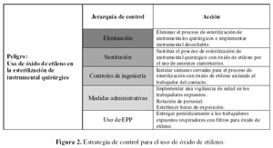 En ese documento se establece en su punto 5.1 la jerarquía de controles las cuales incluyen la eliminación, la sustitución, la implementación de controles de ingeniería, la aplicación de métodos administrativos y, finalmente, el uso de equipos de protección personal o EPP (10). Esta determinación de controles también es recogida en la norma OHSAS 18001:2007, la cual debe ser adoptada por el entrevistador y ayudar a dirigir el recuerdo de las medidas de control en los lugares de trabajo por parte del trabajador. Para esto presentamos un ejemplo ilustrativo ( Figura 2).
